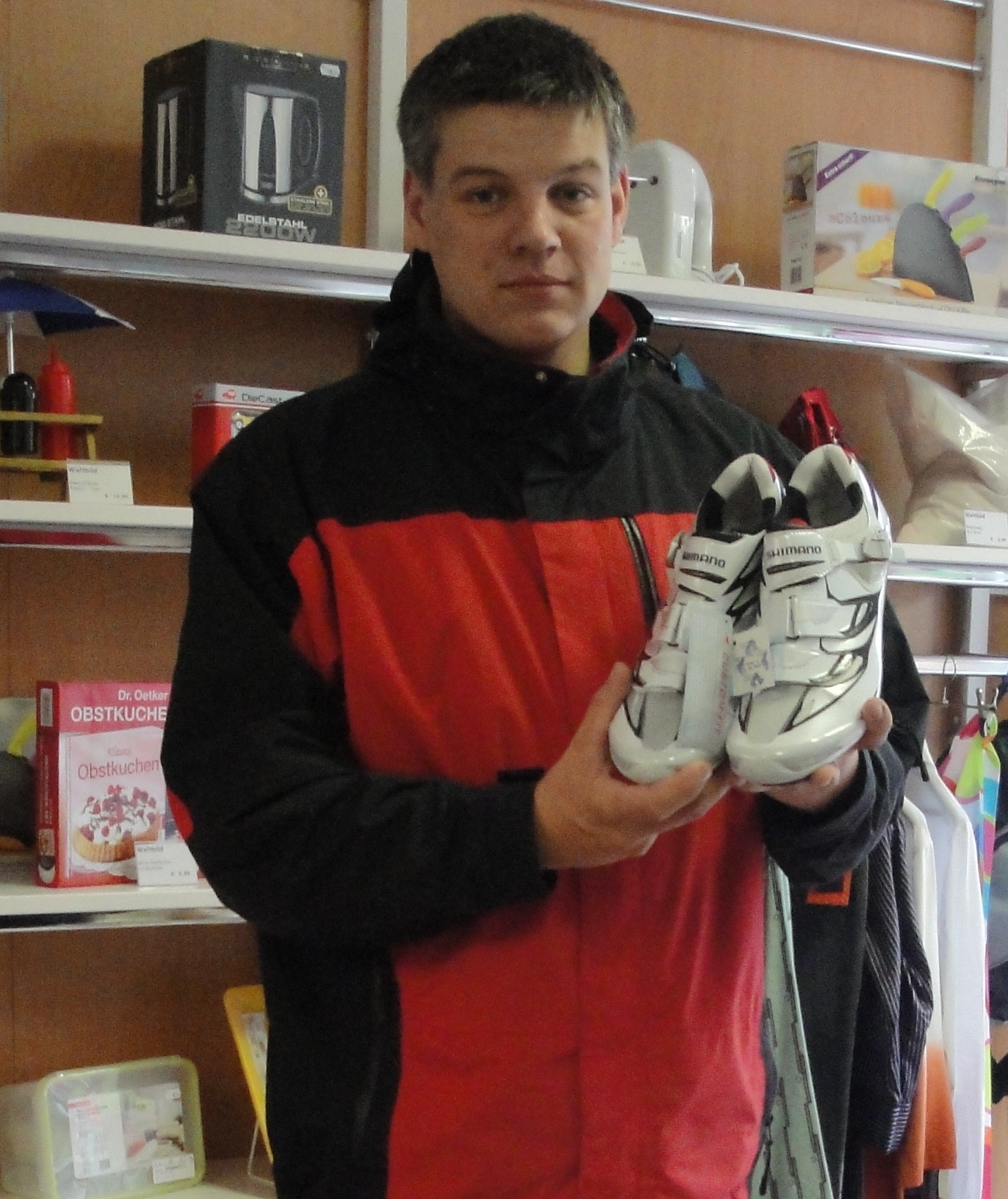 Für die weitere Endschnelligkeit seiner Beine hat sich Rüdiger für ein Spitzenpaar Rennradschuhe aus der Förderung entschieden. Am Samstag, den 30.07.2011, schickte Daniel Reinhardt (Vorstand des Jenaer RV) die Schuhe auf dem Weg nach Berlin, wo sie Rüdiger spätestens am Dienstag erhalten soll. "Es ist das erste Mal, dass ein Sportler aus den Reihen des Jenaer RV, im Dress von JENATEC-Cycling, die Riesenchance hat, den Sprung vom Amateur zum Profiradsport zu schaffen. Wir wollen daher den Weg mit begleiten, damit Rüdiger seine Chance nutzen kann. Seinen Wunsch nach einem Top-Rennradschuh haben wir daher entsprochen, er entschied sich für dieses Modell ", sagt Daniel Reinhardt. In den nächsten 4 Wochen werden weitere Investitionen vorgenommen, um die Nachwuchsarbeit der nächsten Jahre materiell auf eine sichere Basis zu stellen.