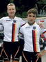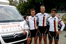 Drei Jenatec-Cycling-Männer fahren in Bulgarien im Deutschland-Trikot
