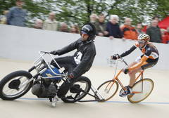 Heidenaus Youngster im Stehersport, René Heinze, hat bei den 14. Thüringer Open in Erfurt vor einem begeistertem Publikum und einer staunender Konkurrenz sein Potential unter Beweis gestellt. Der 22-Jährige vom Team Jenatec Cycling gewann am Sonntagabend überlegen den B-Lauf, nachdem er am Abend zuvor "völlig fest" im A-Vorlauf ausgeschieden war. Nach einer Nacht Pause überrundete er hinter dem gewichtiger Schweizer Kult-Schrittmacher René Aebi (105 Kilo) ein Gespann nach dem anderen. Mindestens dreimal zog er bei der 20-Kilometer-Rundenhatz an den acht Kontrahenten-Teams vorbei.