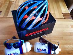So kann es in´s neue Jahr gehen. Das Team hat heute die erste Ausrüstung von "CARRERA" (Helme und Brillen) bekommen und von der "Mobil BKK" Trinkflaschen und einen Werbevertrag.