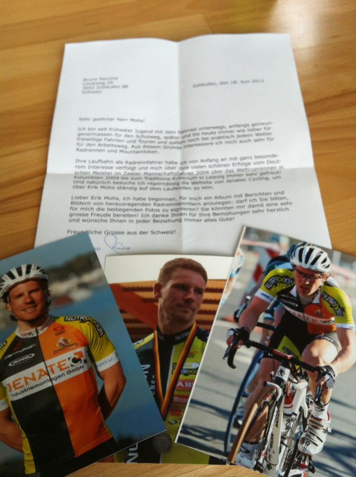 Wie schön... Fanpost zu Händen von Erik Mohs. Danke an Herrn Reccia aus der Schweiz. Wollt auch ihr von euren Sportlern ein Autogramm, dann macht es wie der der oben benannte Fan und schreibt uns . Danke sagt das Team Jenatec Cycling