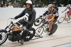 Danilo Kupfernagel vom SSV Gera 1990 ist am Wochenende bei zwei Herbstpreisen auf den Radrennbahnen in Heidenau (Sachsen) und Forst (Brandenburg) jeweils Zweiter der B-Rennen geworden. In Heidenau musste sich der Radsportler vom thüringischen Team Jenatec Cycling mit seinem Schrittmacher Wilfried Kluge (58, Erfurt) nach zwei Läufen (15 bzw. 20 Km) Sebastian Körber, der hinter Frank Schwarz fuhr, geschlagen geben. Beim Herbstpreis der Steher-Neulinge in Forst über 30 Kilometer jagte der 22-Jährige im Windschatten von Peter Bäuerlein hinter Rad-Profi Robert Bartko hinterher. Der 34-jährige Doppel-Olympiasieger im Bahnradsport von Sydney gewann überlegen seine Steher-Premiere das erste Rennen seiner Karriere in einem B-Lauf. Im Windschatten hinter den Motorrädern erreichen die Fahrer bei den Rennen Geschwindigkeiten von teilweise über 70 Stundenkilometern. (df)