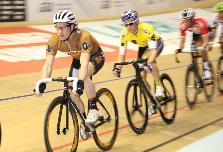 Die thüringisch-sächsische Kombination des Erfurters Barth und des Leipziger Mohs, die 2009 in Cali im Madison den Weltcup gewannen, hätten bislang bei allen Wettbewerben - Derny Cup, Wertungssprint, Zeitfahren, Mannschaftsausscheidungsfahren, Madison und Punktefahren - eine gute Figur gemacht, schätzt Jenatec-Team-Chef Thomas Barth ein. Barth hofft, das die beiden am Dienstag, dem letzten Renntag, diese Platzierung mit nach Hause nehmen können. „Bei dem stark besetzten Feld wäre das für sie ein sehr guter Erfolg". In der Gunst des Publikums hat sein Sohn Marcel, Mohs Partner, schon jetzt unheimlich viele Pluspunkte eingefahren. Der kommunikationsfreudige und aufgeschlossene „Baller-Barth", so sein Spitzname, führt im Showteil die Rennfahrer-Karawane an und sorgt mit Sonnenbrille und Cowboy-Hut für beste Stimmung im Holzoval. (df)