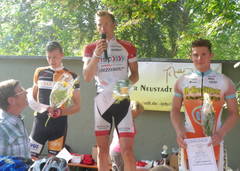 Jena / Gera. Dreifacherfolg für das thüringische Radsport-Team Jenatec Cycling am Wochenende: Bei drei Radkriterien sind jeweils ein Sportler der Renngemeinschaft des SSV Gera 1990 und des Jenaer Radvereins auf das Podium gefahren und dritte geworden: Mathias Wiele, Constantin Liebenow und René Heinze. Mathias Wiele gewann beim 12. Rund in Schwanebeck (bei Berlin) die Bronzemedaille. Bereits nach der dritten Runde und der ersten von insgesamt 13 Wertungen jagte der 26-Jährige vom RC Kleinmachnow in einer Drei-Mann-Spitzengruppe dem Peloton davon. Nach etwa Dreiviertel des 64,3 Kilometer langen Rennens hatte er gemeinsam mit dem späteren Sieger Maximalian Werda (20) vom Ked Bianchi-Team Berlin und dem Zweitplatzierten Lars Telschow (20) vom LKT-Team Brandenburg das etwa 60-köpfige Feld überrundet. Alle drei Runden war Wertung. Wiele wurde meist Zweiter oder Dritter. Die doppelte bepunktete Schlusswertung gewann Werda. „Eigentlich hatte ich anvisiert, die zu gewinnen. Ich hatte mich jedoch verspekuliert, hatte eine Runde zu früh attackiert." Beim Kriterium in Neuenhagen (bei Berlin) hatte sich Constantin Liebenow gut in Szene gesetzt. Nach 41 Kilometern und 18 Runden wurde der 20-Jährige Dritter. Es gewann Andreas Müller (32) vom Berliner TSC vor Lars Telschow (20) vom LKT-Team Brandenburg. Nach dem „Rund um die Neustadt" in Greiz (37,8 Kilometer, 42 Runden á 900 Meter) trat René Heinze vom SSV Gera 1990 in Greiz auf das Podest. Das Rennen gewann Lucas Schädlich (22, SSV Gera 1990) vom Team NSP mit einem Punkt mehr vor dem Geraer Sascha Damrow (25) vom Team UR Krostitzer – Univega, der bei den offenen Landesmeisterschaften zugleich thüringischer Kriteriumsmeister wurde. Die Wertungen auf der technisch sehr anspruchsvollen Strecke wurden jeweils im Feldsprint entschieden. Heinze setzte mehrmals zur Flucht an, wurde jedoch jedes Mal vor der Wertungslinie eingeholt. Sechs Kurven und eine Rechts-Links-Kombination 200 Meter vor dem Ziel forderten sehr gute Lenkkünste, sagte der Sieger. In der Landeswertung landete Heinze hier dem Thüringischen Kriteriumsmeister Damrow auf dem zweiten Platz. (df)