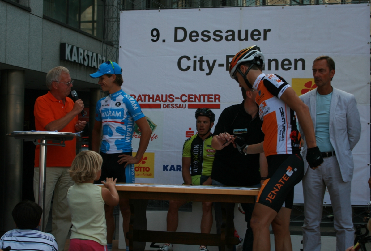 Mit den Plätzen 12, 16 und 17 präsentierte sich das Jenatec Cycling Team eindrucksvoll beim Sieg Linus Gerdemanns in Dessau. Vor 3500 Zuschauern gewann Tour-de-France-Etappensieger Gerdemann das Profi-Rennen um den Großen Preis der Stadt Dessau-Roßlau. Der Milram-Profi verwies Eric Baumann (Nutrixxion) und Robert Bengsch (KED Bianchi) auf die Plätze. Auch die Jenatec-Fahrer zeigten sich im 72 Kilometer langen Rennen in Dessaus Innenstadt. In zahlreichen Ausreißergruppen bestimmten sie das Tempo. Den Sprung in die entscheidende fünfköpfige Gruppe mit Gerdemann schaffte keiner, dafür wurde Rüdiger Selig im Sprint des Feldes guter Siebter und Gesamt-Zwölfter. Richard Kästner und René Heinze kamen auf die Plätze 16 und 17. Der sportliche Leiter des Teams, Thomas Barth, zeigte sich mit den Resultaten und dem Sieg Walslebens sehr zufrieden und sieht sein Jenatec-Team gut gerüstet für die kommende