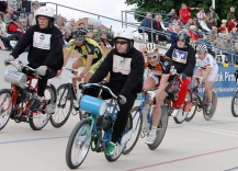 Jeweils zehn zumeist gestandene Fahrer aus der Steher-Szene und jeweils zehn Rad-Amazonen kreisten in vier separaten Läufen auf dem Oval. Cross- und Straßenradspezialistin Hanka Kupfernagel (Team Itera-Stevens), die fünffache Weltmeisterin ist, wurde den gespannten Erwartungen gerecht. Obwohl der ehemaligen Geraerin im Finallauf (15 Kilometer, 60 Runden) zweimal die Kette vom Blatt sprang, triumphierte die 36-Jährige bei ihrer Bahnpremiere an der Seite ihres Partners René Obst (Team Nutrixxion) aus Dresden. Der 33-Jährige fuhr ebenfalls zum ersten Mal hinter einem Derny und überzeugte als Zweit- und Drittplatzierter der Männerläufe.